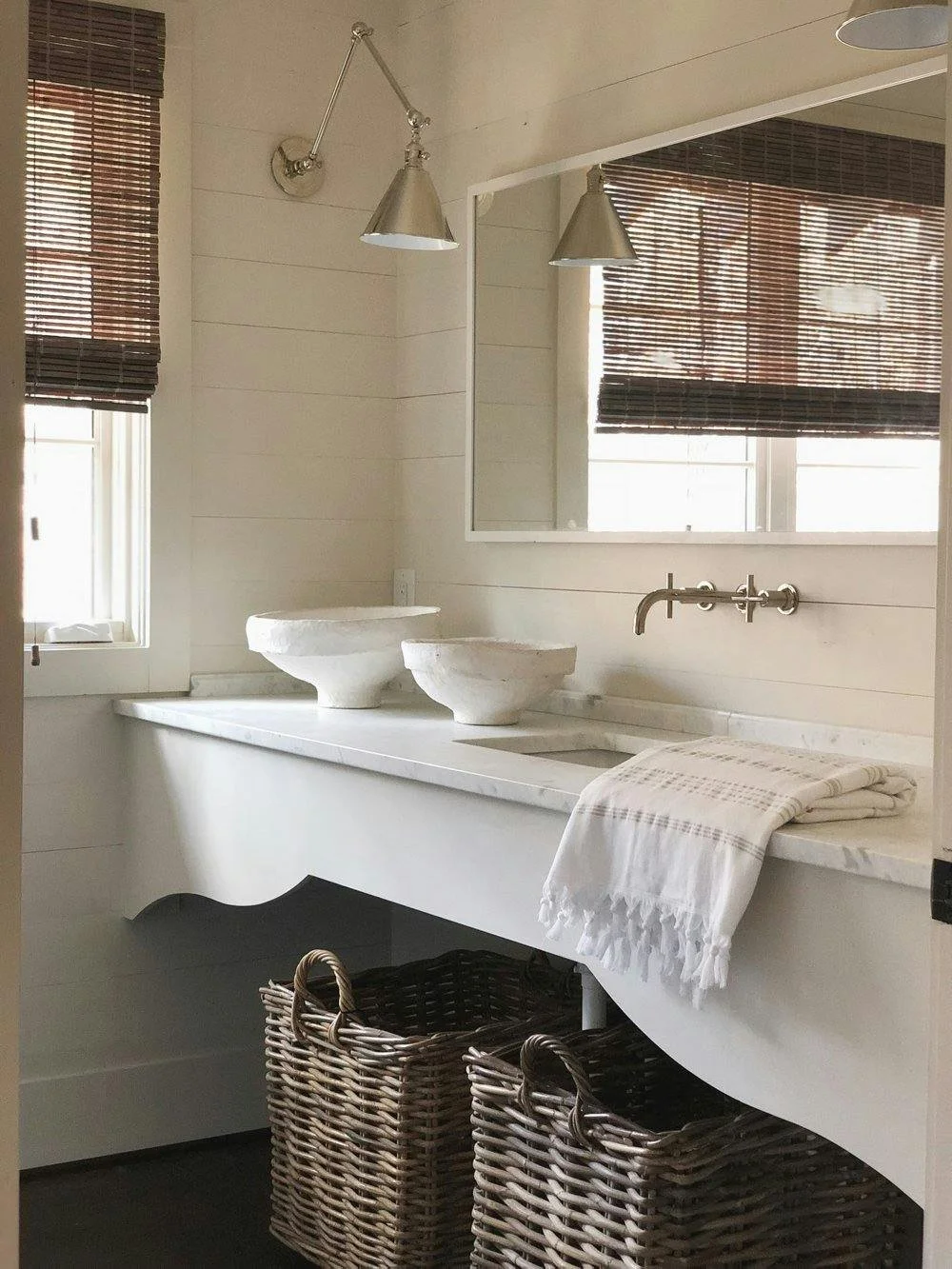 Based in Alabama, I don't have a lot to share about Meredith Sherrill from her IG or website. Her profile is brilliant: "designer and mother, among other things." Isn't that the truth? Meredith's work really stands out from typical Southern designers - very clean and crisp with beautiful European details. I first found her work when I was designing a vanity for a historic home and was looking for interesting custom curvature. See the first image below...