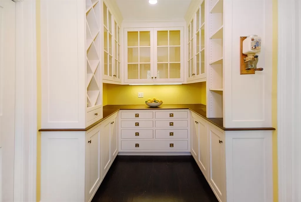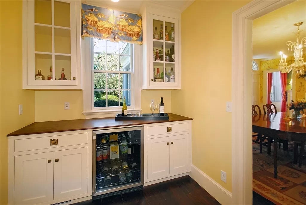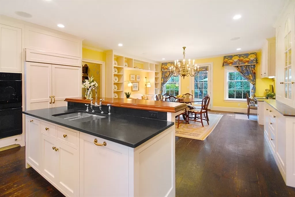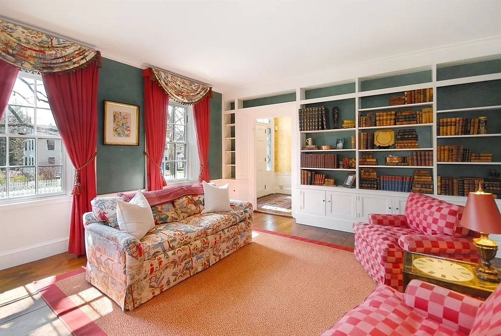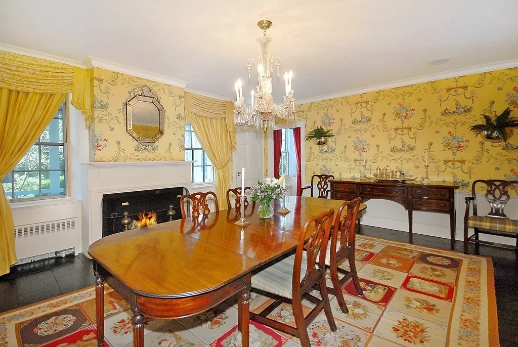 THIS HOUSE IS CALLING TO ME!!!!! Smack in the middle of downtown Concord, it's an incredible historic brick-end Colonial (say that three times fast). Wow are the draperies from another era (does one of the valances have birds on top of popcorn? I can't tell). There are so many amazing architectural details that I would just love to tackle. I actually don't know a lot about brick-end Colonials as a subset of the Colonial period (usually materials are reflective of their geography), but I assume that the brick sides have something to do with the double chimneys.